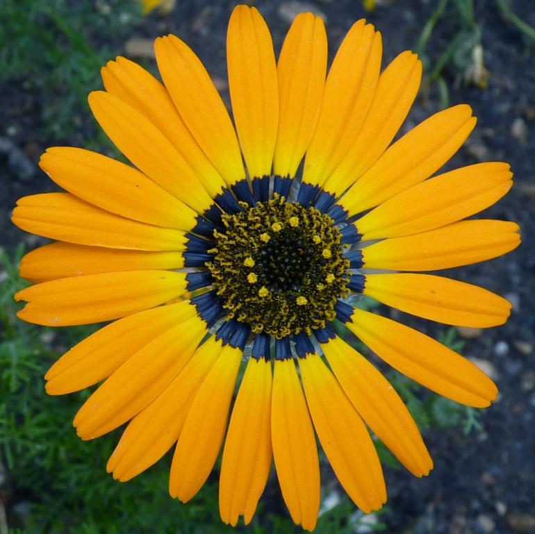 Die Region an der Basis der Blütenblätter von Ursinia speciosa enthält ein dunkles Pigment, erscheint aber aufgrund des Vorhandenseins von Nanostrukturen an der Zelloberfläche Blau. Foto: Edwige Moyroud/University of Cambridge