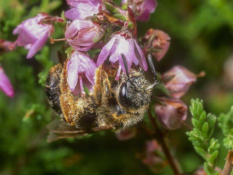 Die Heidekraut-Sandbiene Andrena fuscipes, die Seidenbiene Colletes succinctus sowie die parasitisch lebende Heide-Filzbiene Epeolus cruciger und die Heide-Wespenbiene Nomada rufipes sind ausschließlich in den immer rarer werdenden Sandgebieten mit ausreichend großen Heidekrautbeständen zu finden. „Insgesamt haben wir bei unseren Erfassungen bis jetzt 119 Wildbienen-Arten in Hamburg und Umgebung nachgewiesen“, zieht Manuel Pützstück Bilanz. Davon sind sieben Arten auf der Roten Liste Deutschlands, 27 Arten auf der Roten Liste Schleswig-Holsteins und 26 Arten auf der Roten Liste Niedersachsens gelistet.