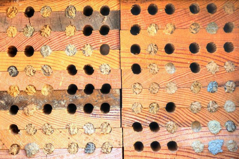 In den Nistgängen der Solitärbienen sind die einzelnen Brutkammern getrennt und beinhalten jeweils nur eine einzige Larve. Das verhindert einen direkten Kontakt mit Schwestern oder Müttern. Foto: Niels Gründel