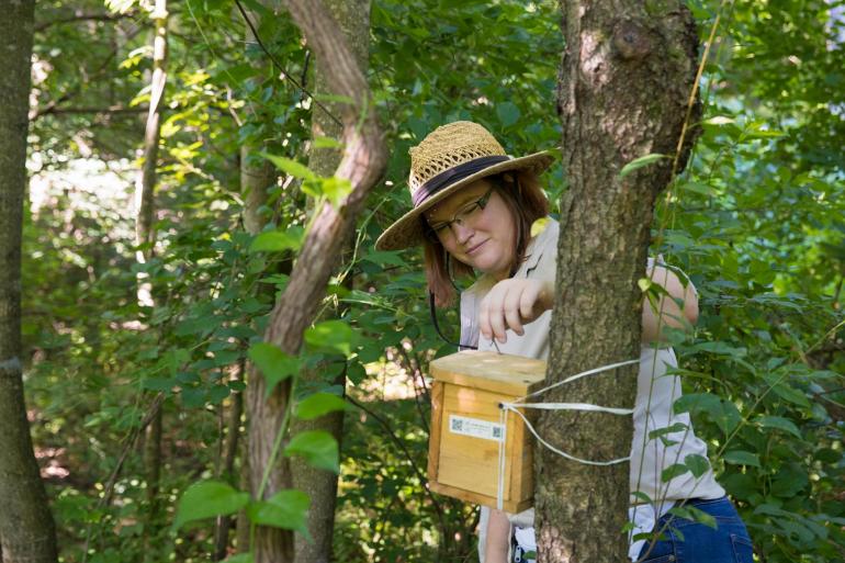 Sie hat dazu an mehreren Standorten in Virginia fast 200 Nistkästen eingerichtet, um Hummel-Königinnen anzulocken, damit sie das Verhalten von Hummeln und die Auswirkungen der Fliegen auf die Hummel-Populationen untersuchen kann.
