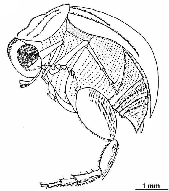 Zeichnung von Angimordella burmitina. Bild: Tong Bao et. al/pnas, CC BY 4.0