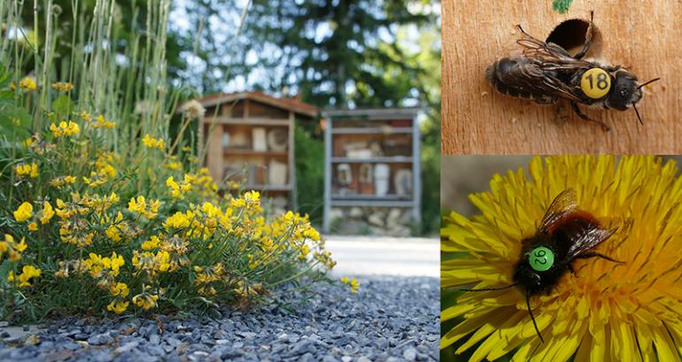 Im Botanischen Garten München-Nymphenburg wurden in den Jahren 2017 und 2018 an zwei großen Insektennisthilfen Wildbienen individuell markiert, um diese dann im Botanischen Garten München-Nymphenburg auf den Blüten wiederzufinden. Unter der wissenschaftlichen Leitung von Prof. Susanne Renner von der Universität München und Wildbienenkenner Dr. Andreas Fleischmann von der Botanischen Staatssammlung München wurden in den beiden Jahren insgesamt 2.689 Wildbienen-Individuen markiert. Dazu wurde jedem Tier mit ungiftigem Schelllackkleber ein farbiges, nummeriertes Plastikplättchen auf ihren Rücken geklebt. Mit dieser Methode markieren Imker normalerweise ihre Bienenkönigin. Kleinere Wildbienenarten wurden mit individuellen Farbcodes aus ungiftigem Farblack auf ihrem Rücken markiert. Es wurden sechs Wildbienen-Arten untersucht – größere und kleinere, solche die im Frühjahr fliegen und typische Sommerarten, Arten mit breitem Nahrungsspektrum und Nahrungsspezialisten, die Pollen für ihre Larven nur an einer einzigen oder ganz wenigen Pflanzen sammeln. Die markierten Bienen wurden dann während ihrer Flugperiode täglich im Garten an möglichen Futterquellen gesucht. Darüber hinaus konnten auch Besucher des Botanischen Gartens beobachtete markierte Wildbienen melden und mit einem (Handy)Foto dokumentieren – die Daten aus diesem von den Besuchern sehr gut angenommen Citizen-Science-Projekt flossen ebenfalls in die Studie mit ein, insgesamt gab es 203 Rückmeldungen von gesichteten markierten Wildbienen durch Gartenbesucher.