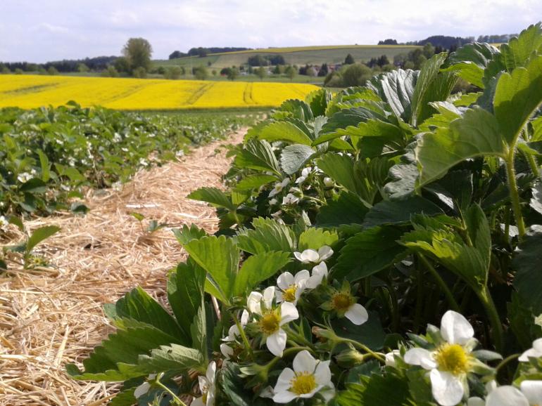 Wenn Erdbeerfelder neben Raps stehen, bevorzugen Honigbienen das Erdbeerfeld. Foto: Svenja Bänsch