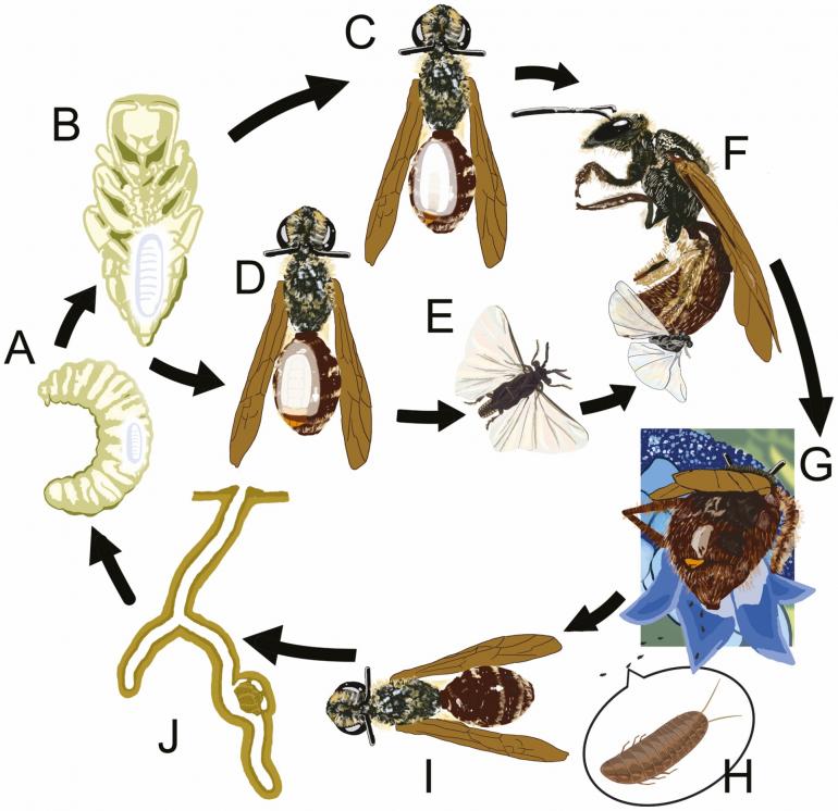 Der Lebenszyklus von Halictoxenos borealis. Quelle: Nakase & Kato 2021, CC BY 4.0