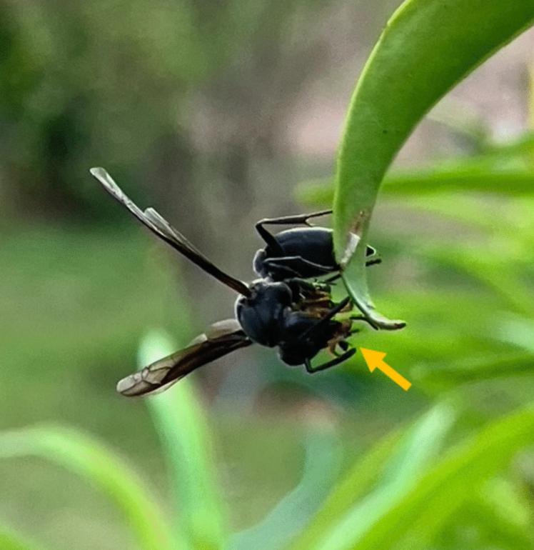 Ein Weibchen von Polybia ignobilis hat eine Wächterbiene einer Stachellosen Biene Tetragonisca angustula erbeutet. Foto: Samuel Boff/Boff & Somavilla 2024/CC BY 4.0 DEED