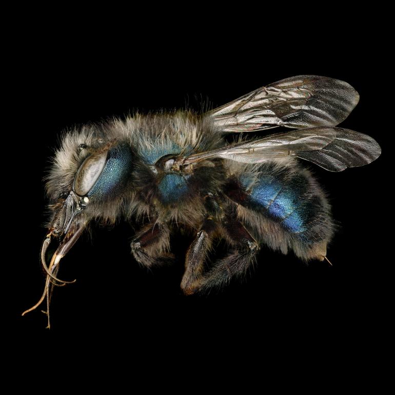 Die Blaue Gartenbiene ist eine wichtige Bestäuberin in Nordamerika. Foto: Exotic Bee ID/Flickr, PDM 1.0 DEED