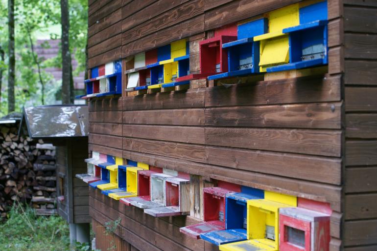 Dunkle Honigbienen im Bienenhaus (in der Schweiz). Foto: Niels Gründel