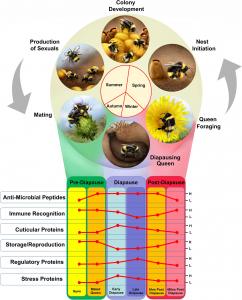 Das Verständnis der Mechanismen, mit denen Organismen sich an ungünstige Bedingungen anpassen, ist eine grundlegende Frage von Ökologie und Evolutionsbiologie. Ein solcher Mechanismus ist die Diapause, die Ruhephase, mit der etwa auch Hummeln den Winter überstehen. Wissenschaftler haben die molekularen Veränderungen in der Hämolymphe der Dunklen Erdhummel untersucht.